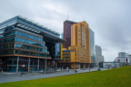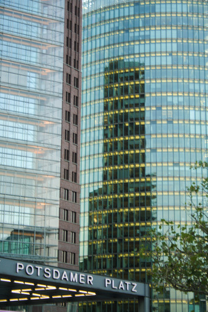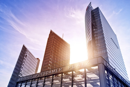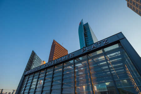 BERLIN - May 10: Station building and skyscrapers at Potsdamer Platz on May 10, 2016 in Berlin.