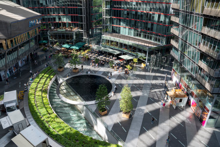 Berlin, Germany, - August 29, 2015: Modern new-built architecture of Potsdam Square, important public square and traffic intersection in the centre of Berlin