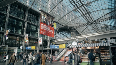 BERLIN, GERMANY - MAY 1, 2018. Hauptbahnhof or Main railway station interior