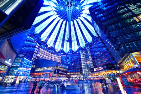 BERLIN - AUGUST 18: The Potsdamer Platz at night on August 18, 2012 in Berlin, Germany. The Potsdamer Platz is the new modern city center of Berlin.