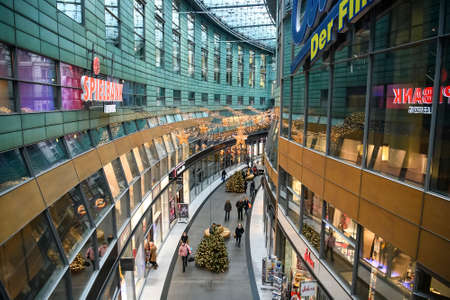 BERLIN, GERMANY, MARCH 12, 2015: people are walking through one of the commerce centers of berlin - potzdamer platz. this square was freshly built after German reunification.