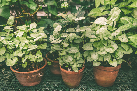 Variety of potted house plants in flower shop, stock photo
