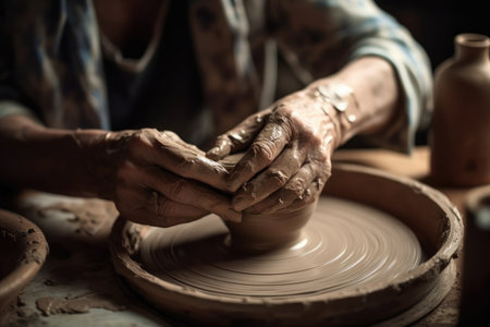 Crafting Art, The Potter's Hands at Work. Generative AI
