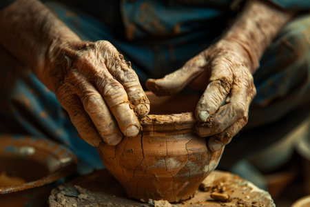 Craftsperson skillfully creates earthenware vase using clay and pottery techniques generated by artificial intelligence