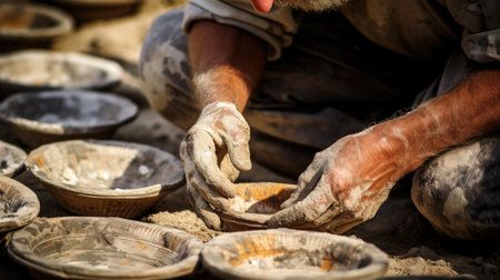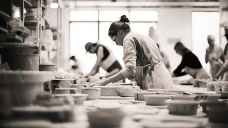 Studio photography of authentic pottery manufacturing process. Image created using generative AI.