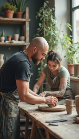 Creative pottery session with a focused man and a woman