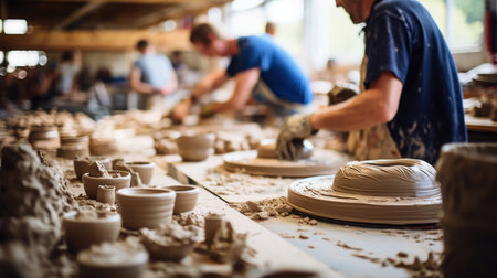 Studio photography of authentic pottery manufacturing process. Image created using generative AI.