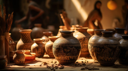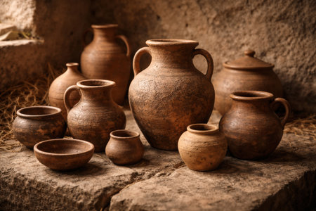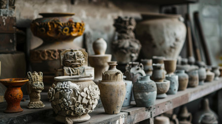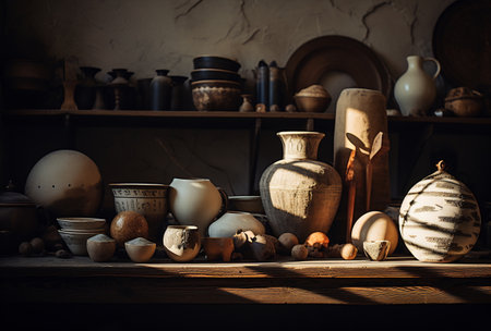 Discover a cozy pottery workshop filled with an array of handcrafted clay vessels, showcasing the beauty of rustic craftsmanship and artistic tradition.