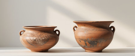 AI Generated. Ancient pottery with intricate designs highlights cultural craftsmanship and history