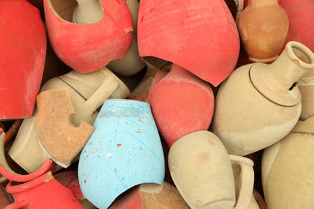 beautiful background from pieces of clay colored broken pottery decoration abstract