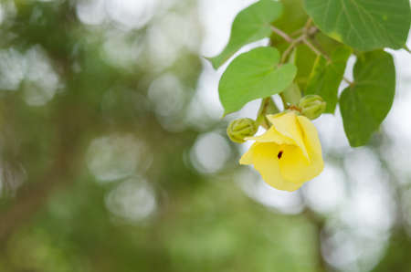 Yellow flower on the tree with sunlight in the morning, soft focus