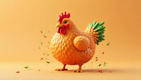 Stylized chicken illustration on light orange background