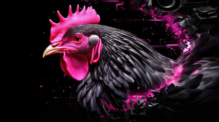 Image of colorful chicken head. Farm animals. Illustration, Generative AI.