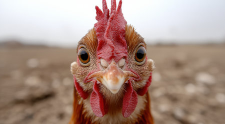 a portrait of a rooster looking into the camera