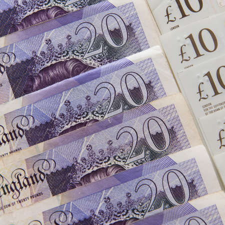 Britain paper money, pound sterling, cash banknotes for financial and business transactions. Britain money as a background for your design
