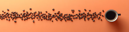 A visually appealing arrangement of roasted coffee beans scattered elegantly around a spacious copy space, ideal for coffee lovers and brands