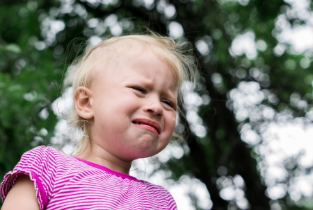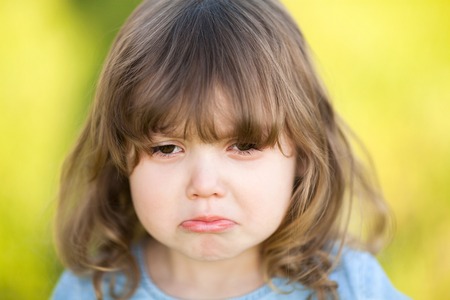 Adorable unhappy little girl with sad expression of her face, going to cry