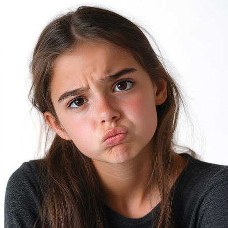 A close-up of an obese child's face, showing sadness and frustration with their appearance?