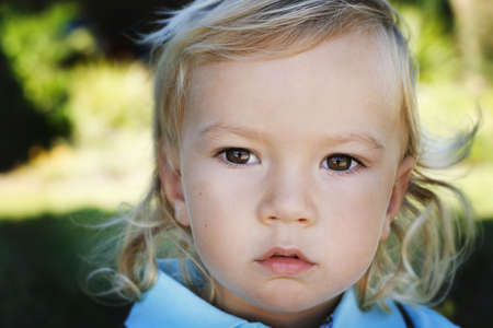 Child. Little Boy with Blue Eyes. Close-up Portrait of Funny Kid.Children emotion