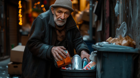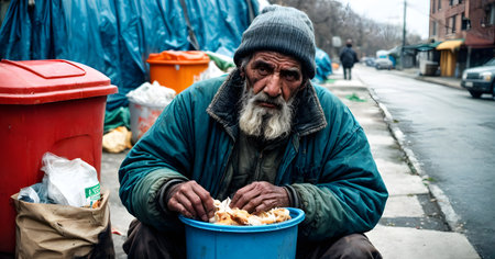 Aging Society homeless old man searching