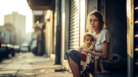 Disadvantaged people living in poverty background. Desolate street. Generate ai
