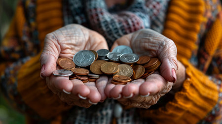 Hands of old woman holding coins