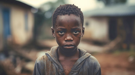 Portrait of an unhappy homeless child from a poor area