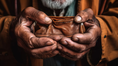 empty wallet in the hands of a poor person who has no money to pay for losing everything, by ai generative