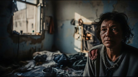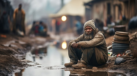 Unveiling hunger's grasp: a poignant portrayal of poverty's grip, depicting the harsh realities faced by those afflicted by hunger and deprivation.