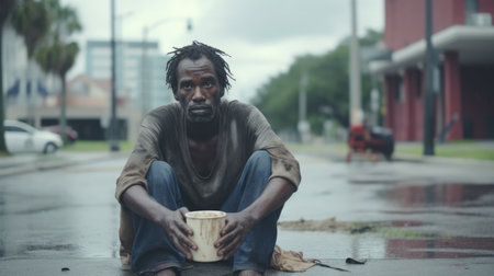 portrait of a homeless man wandering the street, depressed, sick and lonely, documentary concept of homelessness and poverty, social problems in the world.