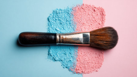 A brush with pink and blue make up powder impact to make a colorful cloud.