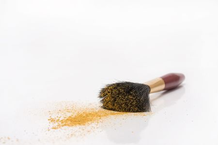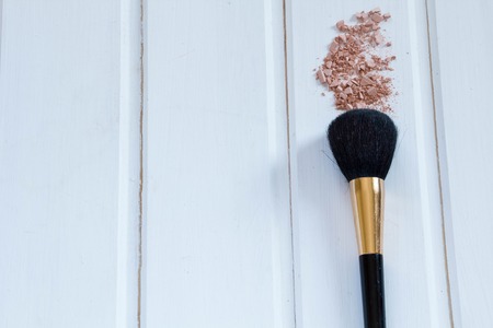 Traces of powder with a makeup brush, isolated on the white background. Copy space.