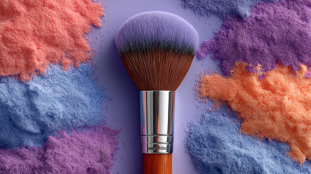 Makeup artist brush and bright eye shadow, cosmetics and makeup, bright background