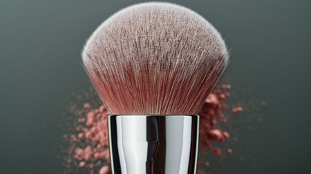 Makeup brush with a highlighter that effectively spreads in different directions. Dark background, minimalism, copy space. Make-up, cosmetics, visage concept.