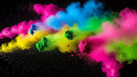 A Vibrant Explosion of Colorful Powder Creating a Magical Textured Background in Dark Setting