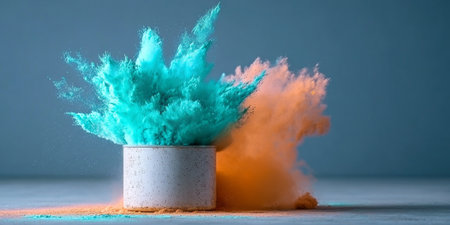 Colorful Powder Explosion from Container, Vivid Pigments Creating Abstract Artwork and Imagination