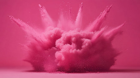 A vibrant explosion of pink powder creating an artistic and dynamic visual effect.