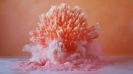 This stunning image captures a vibrant explosion of pink powder against an orange background, creating a mesmerizing and abstract art piece. The dynamic burst of colorful particles showcases creativity and energy, making it perfect for artistic and visual applications.