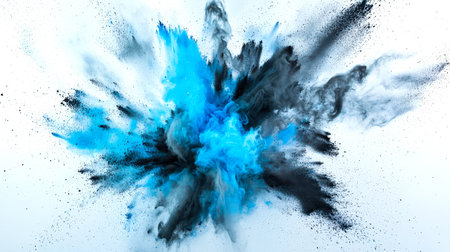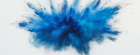 Blue powder explosion against a white background
