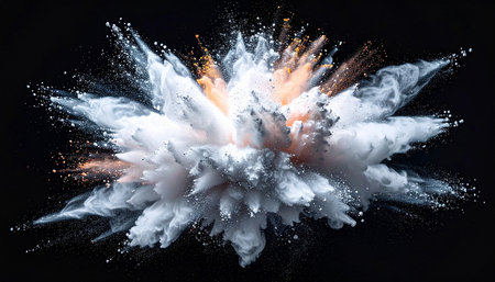 A captivating image of an explosion of dust and smoke heightened by dynamic motion, showcasing elements of chaos and power against a dark backdrop.