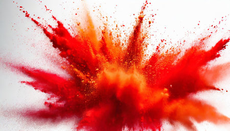 Bright red Holi powder explosion bursts vibrantly against a clean white background, symbolizing Indias iconic festival of colors. This image captures dynamic cultural energy, festive joy, and