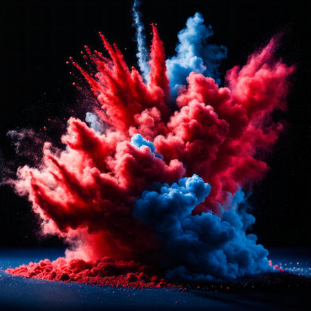 Vibrant Red Blue Powder Explosion Abstract Background Design art ink dark neon paint burst cloud