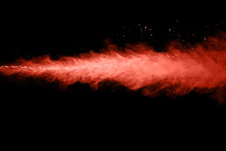 Abstract living coral powder splatted background,Freeze motion of color powder exploding/throwing color powder,color glitter texture on black background.