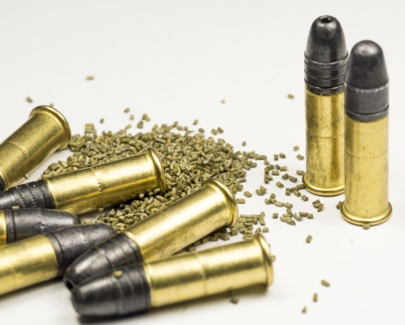 .22 caliber Long rifle Rimfire Ammunition with smokeless powder on white