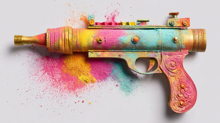 Colorful holi powder splashes on a gun. Holi festival concept