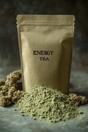 Energy Tea Blend in Kraft Paper Pouch with Fitness Accessory, Promoting Active Lifestyle
