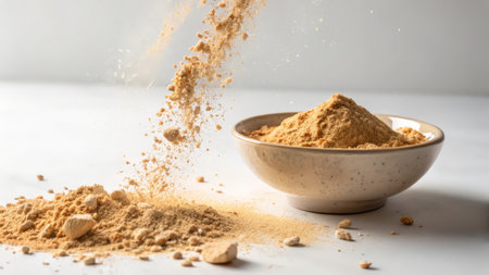 Maca powder, natural supplement derived from the root of Lepidium meyenii.