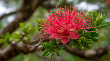 Beautiful Red Ohia Lehua Flower in Bloom on the Natural Background