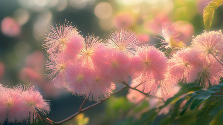 Pink fluffy Japanese acacia flowers with selective focus