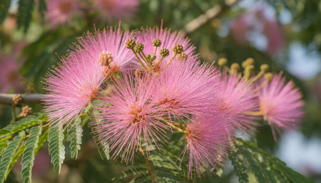 macro color photo of a silk tree blossom -Albizia julibrissin